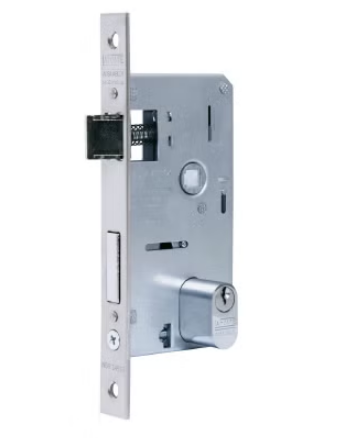 Máquina fechadura LaFonte. Mecânica de embutir, trinco ajustável, testa, contra-testa. Grau de segurança: Máxima Trafégo Intenso Espessura da porta: 30 a 40mm.